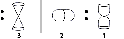 הצורה השמאלית מורכבת משני חלקים: חלק ימני וחלק שמאלי, שהם תמונת מראה זה של זה. כדי להגיע לצורה הימנית נראה ש"קיפלו" כלפי מעלה את שני החלקים כך שהקצוות שלהם התחברו: