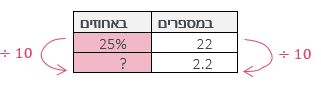 נשלים את החסר: 2.5% = 10 ÷ 25%